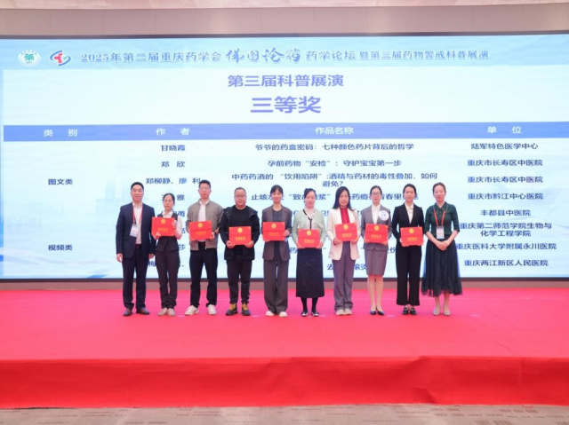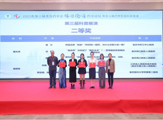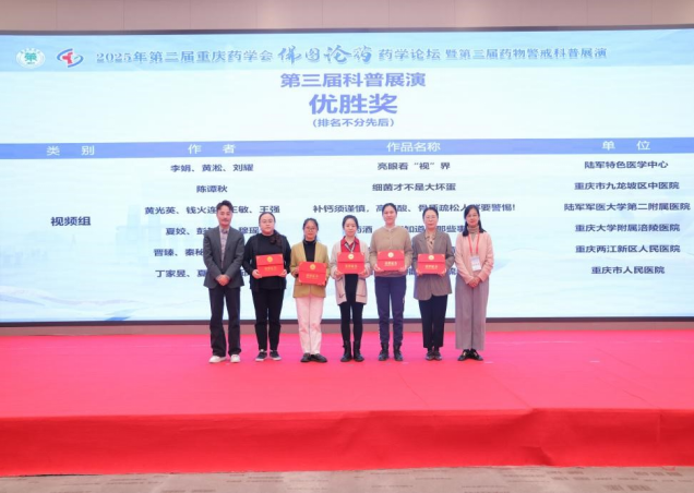 近日,由重庆药学会、《中国药业》杂志联合主办的“第三届药物警戒科普大赛”举办。重庆两江新区人民医院荣获图文类、视频类及团体贡献奖等多个奖项。